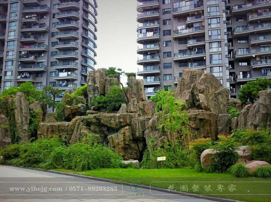 楓華府弟塑石假山|小區假山制作|庭院假山錦鯉池施工